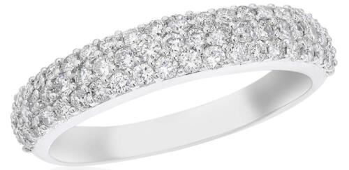 .97CT DIAMOND 18KT WHITE GOLD CLASSIC ROUND 3 ROW PAVE WEDDING ANNIVERSARY RING
