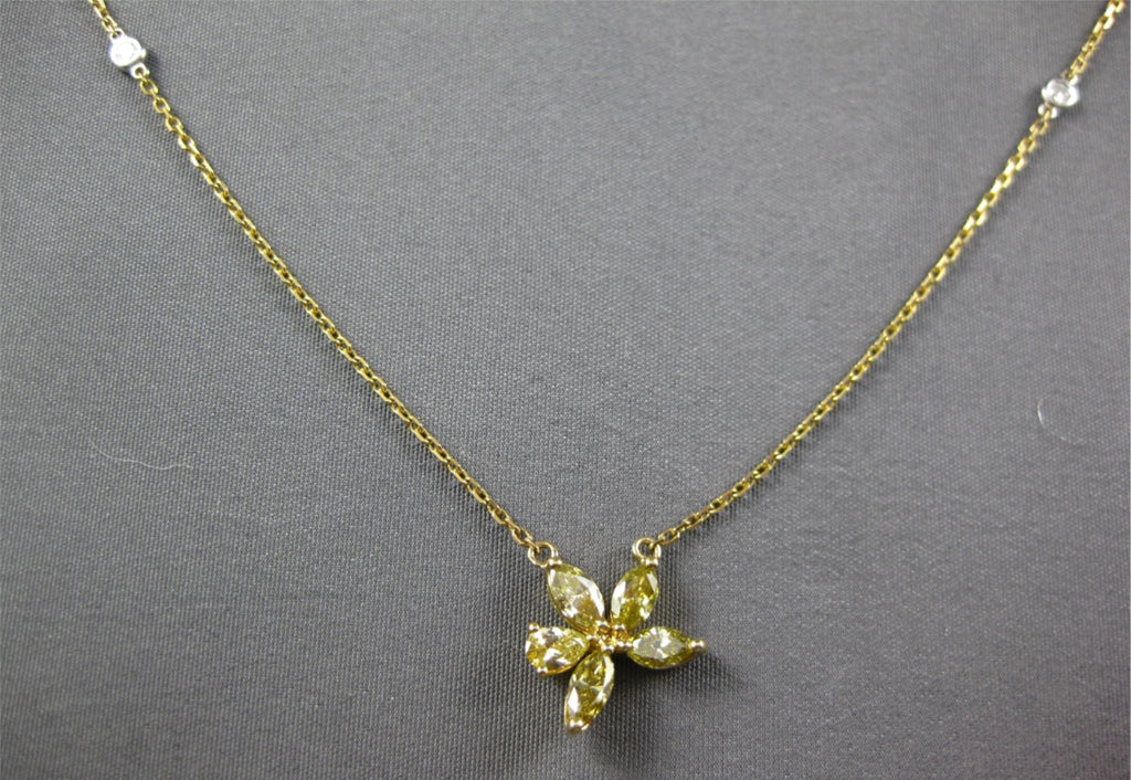 .97CT WHITE & FANCY YELLOW DIAMOND 18KT YELLOW GOLD FLOWER BY THE YARD NECKLACE