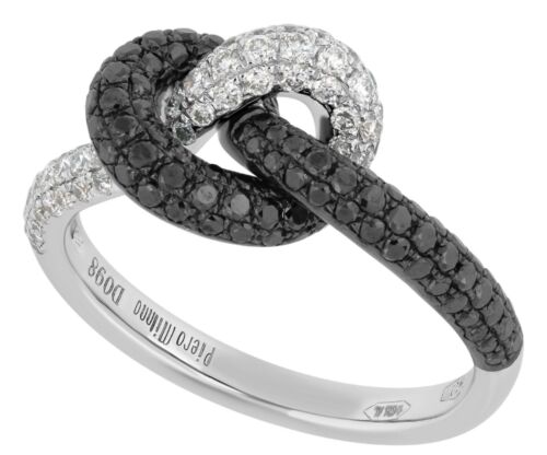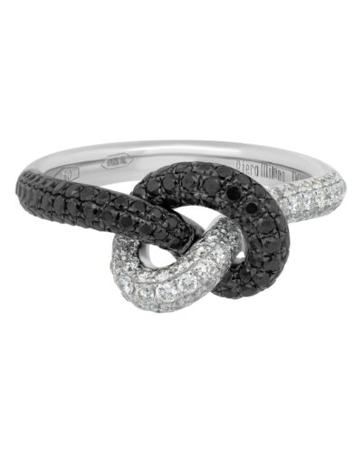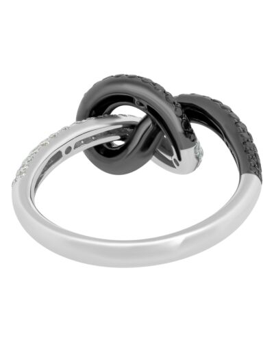.98CT WHITE & BLACK DIAMOND 18KT WHITE & BLACK GOLD CLASSIC LOVE KNOT FUN RING