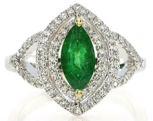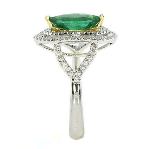 .99CT DIAMOND & AAA EMERALD 18K 2 TONE GOLD MARQUISE DOUBLE HALO ENGAGEMENT RING