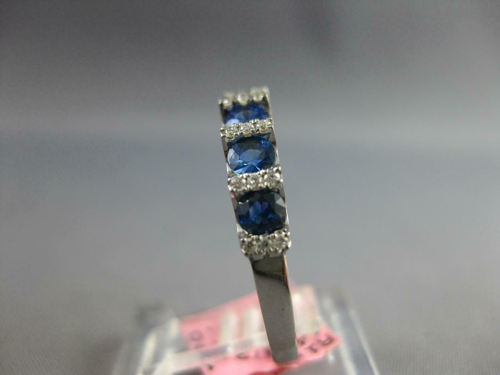 14KT WHITE GOLD ANNIVERSARY RING. 3D SEVEN STONE CHANNEL DESIGN. DIAMONDS ARE F/G COLOR, VVS-VS CLARITY .09 CARATS. AAA SAPPHIRES ARE .90 CARATS. MEASURES 3.5MM WIDE. RING SIZE 6.5. CAN BE SIZED BY OUR MASTER JEWELER UPON REQUEST. WRITTEN APPRAISAL AVAILABLE. COMES IN A PRESENTABLE GIFT BOX.