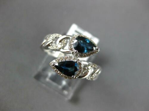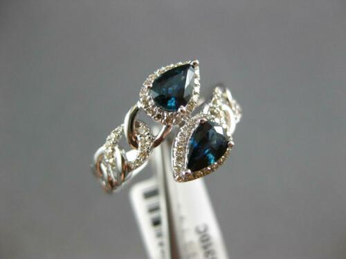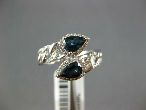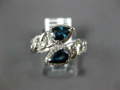 14KT WHITE GOLD RING. 3D CRISS CROSS SNAKE DESIGN. ROUND DIAMONDS ARE F/G COLOR, VSSI CLARITY .20 CARATS. AAA PEAR SHAPE SAPPHIRES ARE .79 CARATS. MEASURES 12mm WIDE. RING SIZE 7. CAN BE SIZED BY OUR MASTER JEWELER UPON REQUEST. WRITTEN APPRAISAL AVAILABLE. COMES IN A PRESENTABLE GIFT BOX.