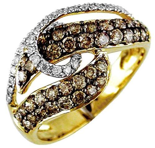 .99CT WHITE & MOCHA DIAMOND 14KT 2 TONE GOLD CDOUBLE LEAF CRISS CROSS FUN RING