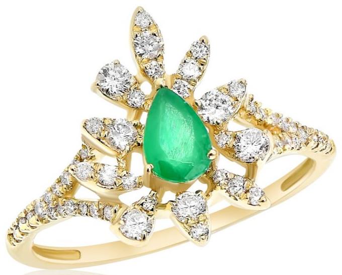 .79CT DIAMOND & AAA EMERALD 18KT YELLOW GOLD PEAR SHAPE FLOWER ENGAGEMENT RING