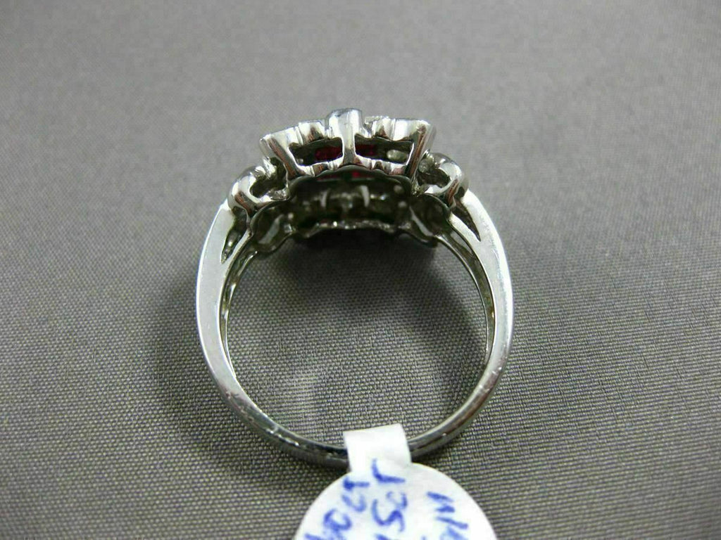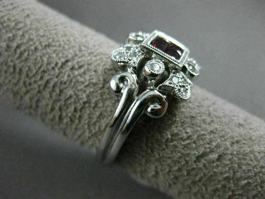 ESTATE 1.05CT DIAMOND & AAA RUBY 18KT WHITE GOLD 3D SQUARE FILIGREE FLORAL RING