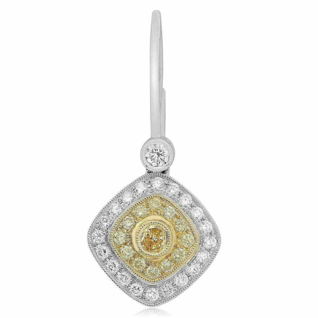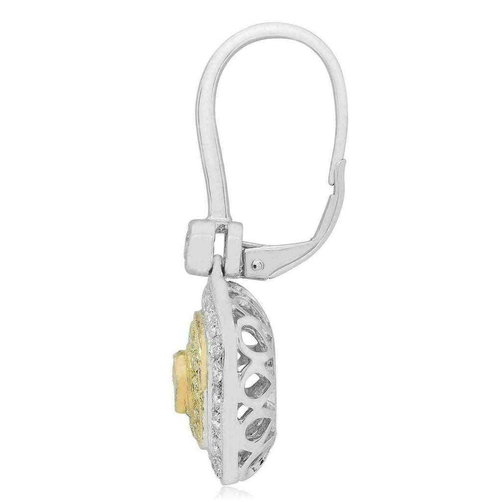 ESTATE 1.56CT WHITE & FANCY YELLOW DIAMOND 18K 2 TONE GOLD HALO HANGING EARRINGS
