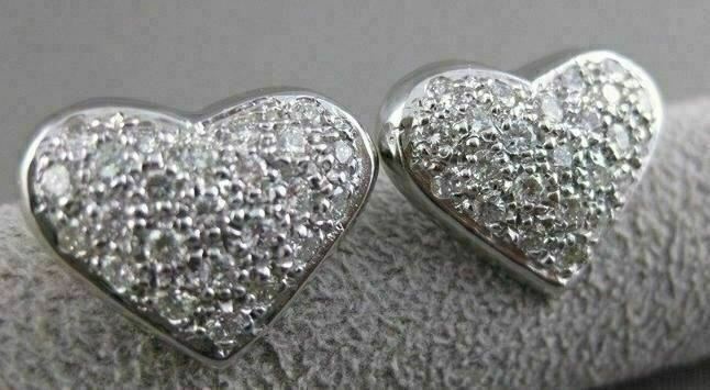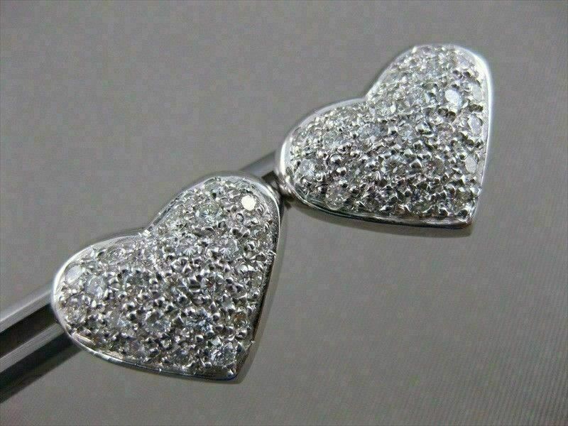 ESTATE 1.70CTW DIAMOND PAVE HEART 14KT WHITE GOLD EARRINGS 18MM E/F VVS #21492