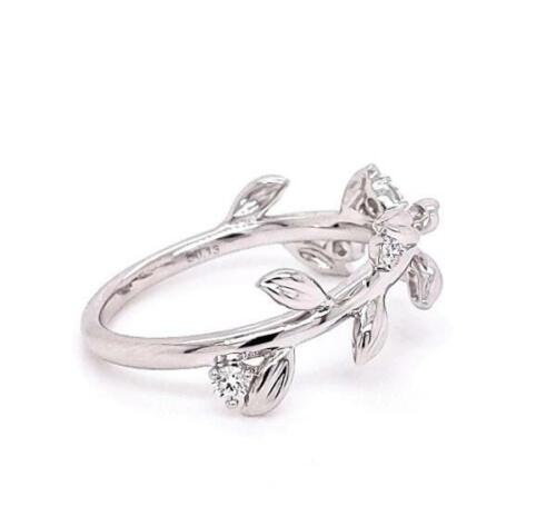 ESTATE .13CT DIAMOND 18KT WHITE GOLD 3D CLASSIC MULTI LEAF FUN RING