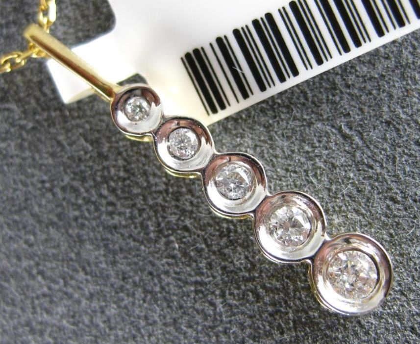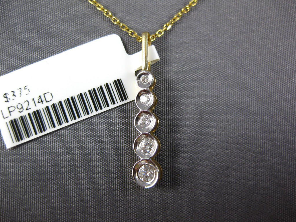 ESTATE .14CT DIAMOND 14KT 2 TONE GOLD CLASSIC 5 STONE JOURNEY BEZEL LOVE PENDANT