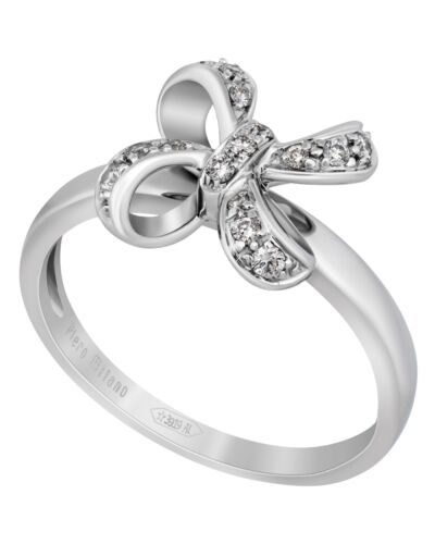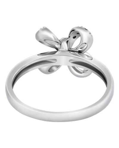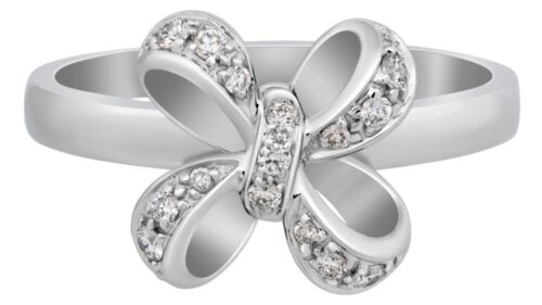 ESTATE 18KT WHITE GOLD FUN RING. 3D BOW DESIGN. DIAMONDS ARE F/G COLOR, VSSI CLARITY .14 CARATS. MEASURES 10.9mm X 10.9mm. RING SIZE 7.75. CAN BE SIZED BY OUR MASTER JEWELER UPON REQUEST. WRITTEN APPRAISAL AVAILABLE. COMES IN A PRESENTABLE GIFT BOX.