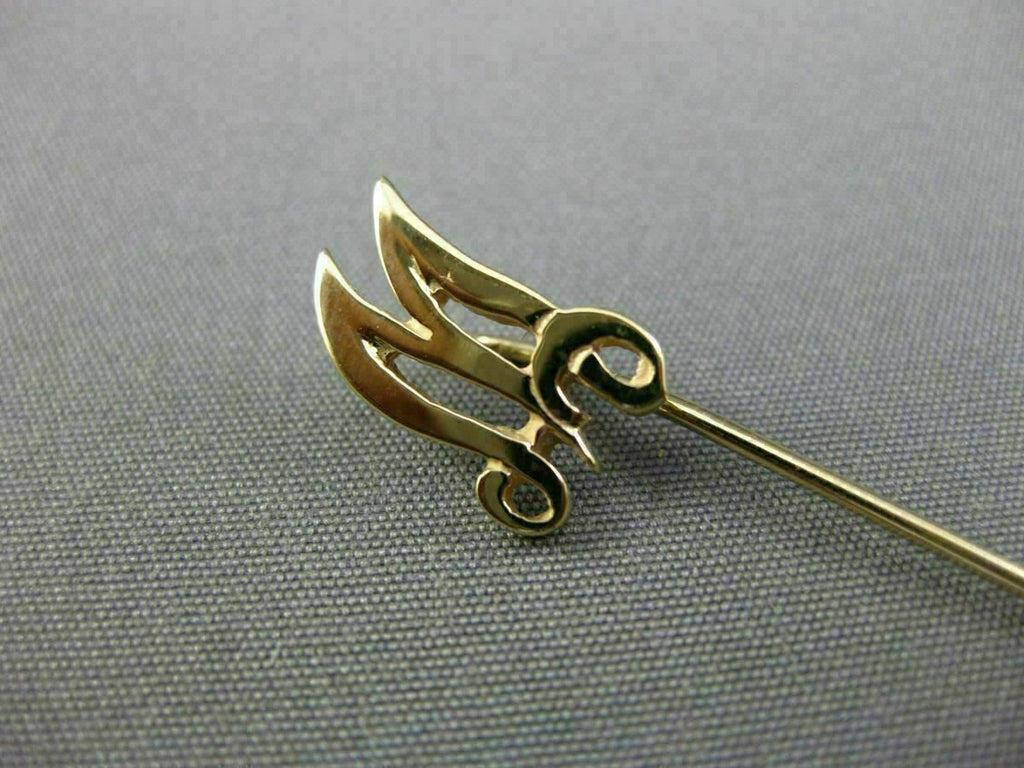 ESTATE 14KT YELLOW GOLD LAPEL PIN. 3D CLASSIC "M" INITIAL DESIGN. MEASURES 65mm X 7mm. WRITTEN APPRAISAL AVAILABLE. COMES IN A PRESENTABLE GIFT BOX.