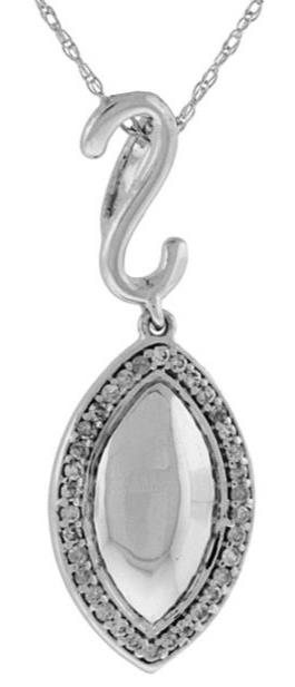 ESTATE 14KT WHITE GOLD FUN PENDANT. 3D MARQUISE SHAPE DESIGN. DIAMONDS ARE F/G COLOR, VSSI CLARITY .15 CARATS. COMES ON A 14KT GOLD DIAMOND CUT 16" INCH CHAIN. WRITTEN APPRAISAL AVAILABLE. COMES IN A PRESENTABLE GIFT BOX.