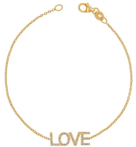 ESTATE 14KT YELLOW GOLD FUN BRACELET. 3D CLASSIC LOVE DESIGN. ROUND DIAMONDS ARE F/G COLOR, VSSI CLARITY .18 CARATS. 7" INCHES LONG. WRITTEN APPRAISAL AVAILABLE. COMES IN A PRESENTABLE GIFT BOX.
