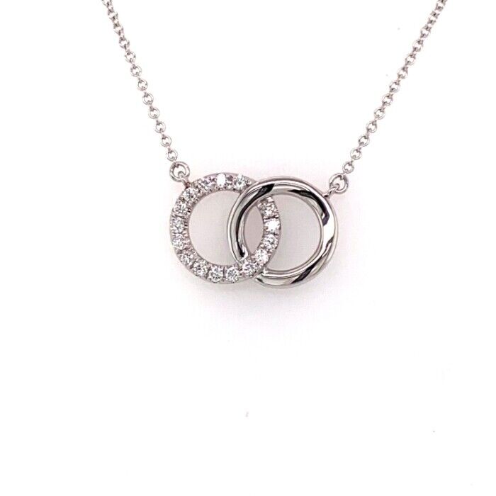 ESTATE .18CT DIAMOND 18KT WHITE GOLD 3D CLASSIC ROUND LOVE KNOT FUN NECKLACE