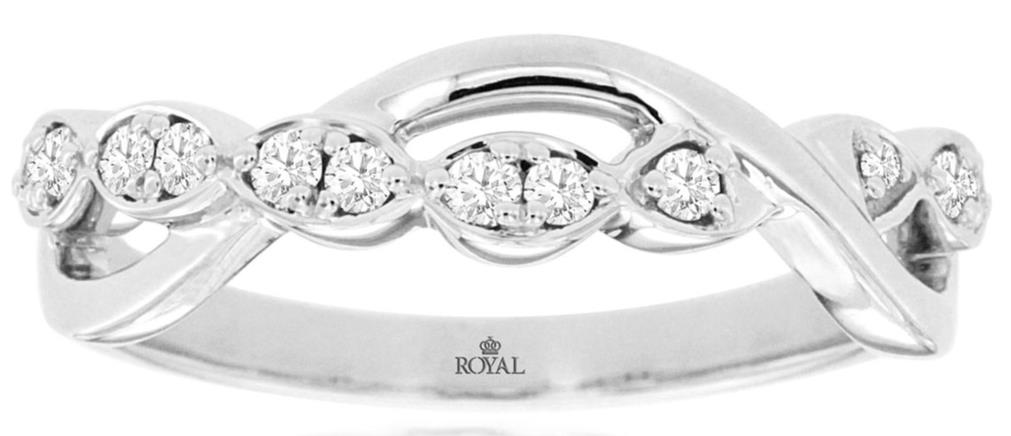 ESTATE 14KT WHITE GOLD LOVE RING. 3D CRISS CROSS INFINITY DESIGN. ROUND DIAMONDS ARE F/G COLOR, VSSI CLARITY .19 CARATS. RING SIZE 7. CAN BE SIZED BY OUR MASTER JEWELER UPON REQUEST. WRITTEN APPRAISAL AVAILABLE. COMES IN A PRESENTABLE GIFT BOX.