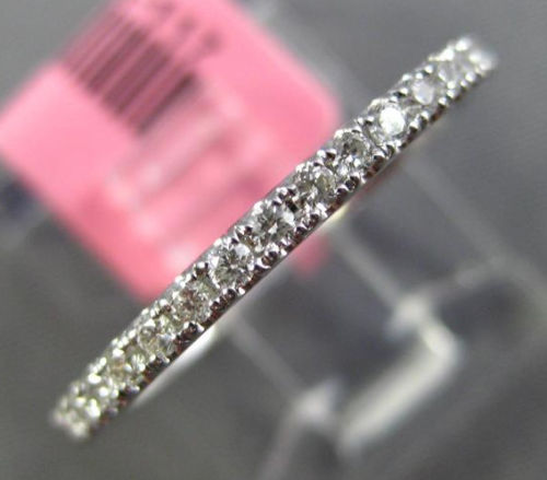 ESTATE 18KT WHITE GOLD WEDDING ANNIVERSARY RING BAND. 3D CLASSIC SEMI ETERNITY DESIGN. DIAMONDS ARE F/G COLOR, VSSI CLARITY .19 CARATS. MEASURES 1mm WIDE. RING SIZE 6.50. CAN BE SIZED BY OUR MASTER JEWELER UPON REQUEST. WRITTEN APPRAISAL AVAILABLE. COMES IN A PRESENTABLE GIFT BOX.