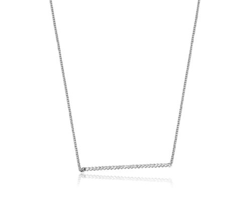 ESTATE 14KT WHITE GOLD FUN LOVENECKLACE. 3D CLASSIC BAR DESIGN. DIAMONDS ARE F/G COLOR, VSSI CLARITY .19 CARATS. MEASURES 35mm X 1mm. 17" INCHES LONG. WRITTEN APPRAISAL AVAILABLE. COMES IN A PRESENTABLE GIFT BOX.
