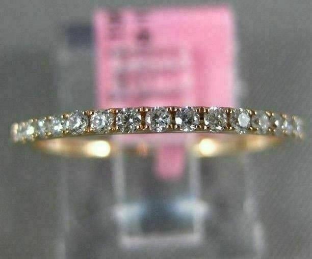 ESTATE 18KT ROSE GOLD WEDDING ANNIVERSARY RING. 3D CLASSIC SEMI ETERNITY DESIGN. DIAMONDS ARE F/G COLOR, VSSI CLARITY .19 CARATS. MEASURES 1mm WIDE. RING SIZE 6.25. CAN BE SIZED BY OUR MASTER JEWELERS UPON REQUEST. WRITTEN APPRAISAL AVAILABLE. COMES IN A PRESENTABLE GIFT BOX.