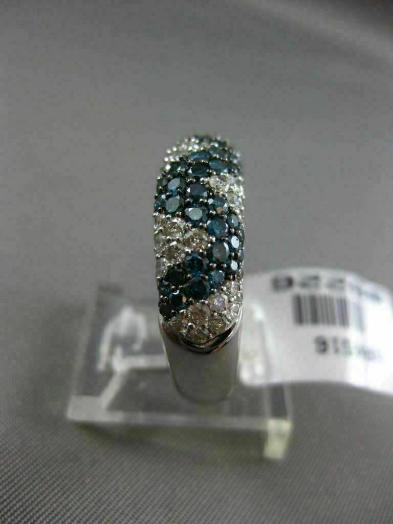 ESTATE 14KT WHITE GOLD WEDDING ANNIVERSARY RING. 3D CRISS CROSS PAVE DESIGN. WHITE DIAMONDS ARE F/G COLOR, VSSI CLARITY. WHITE & BLUE DIAMOND ARE 2.29 CARATS. MEASURES 7mm WIDE. RING SIZE 7.25. CAN BE SIZED BY OUR MASTER JEWELER UPON REQUEST. WRITTEN APPRAISAL AVAILABLE. COMES IN A PRESENTABLE GIFT BOX.
