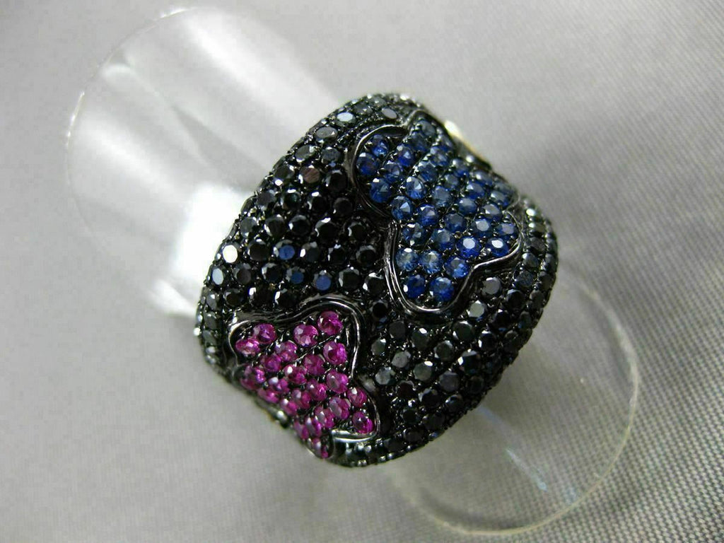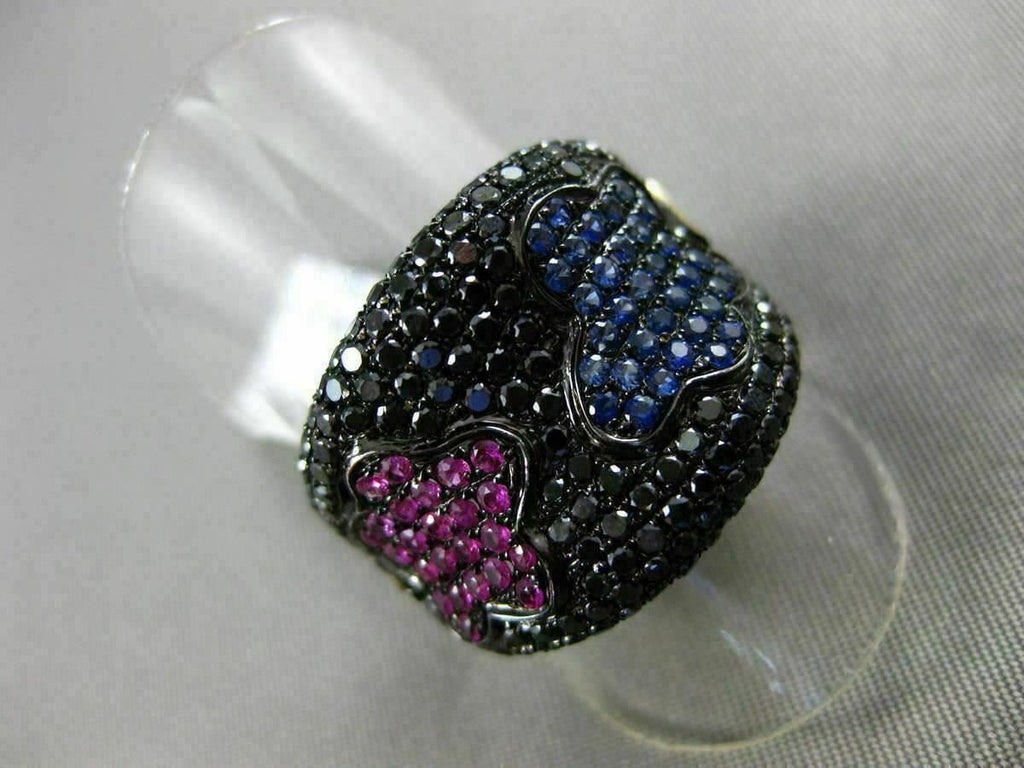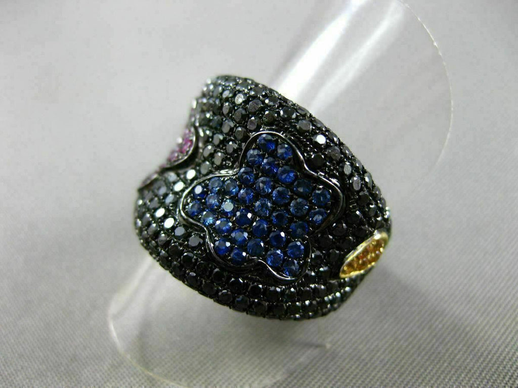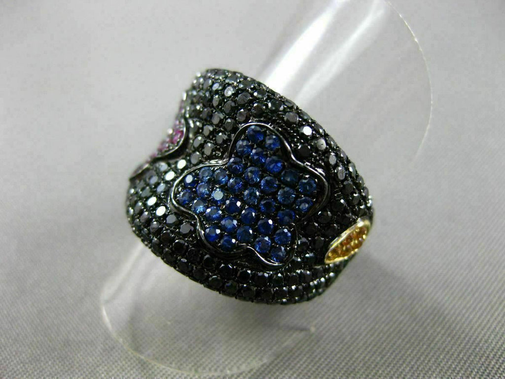 ESTATE 2.85CT BLACK DIAMOND & AAA MULTI COLOR SAPPHIRE 18KT GOLD BUTTERFLY RING