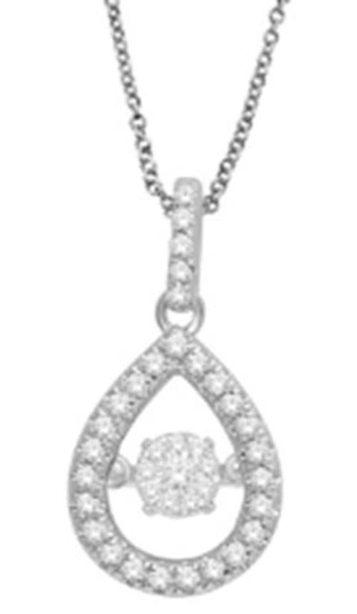 ESTATE .20CT DANCING DIAMOND 14KT WHITE GOLD PEAR SHAPE FLOWER FLOATING PENDANT