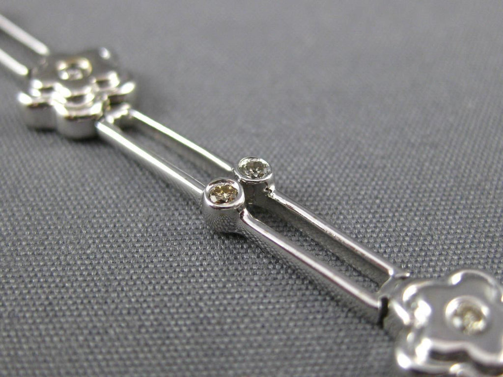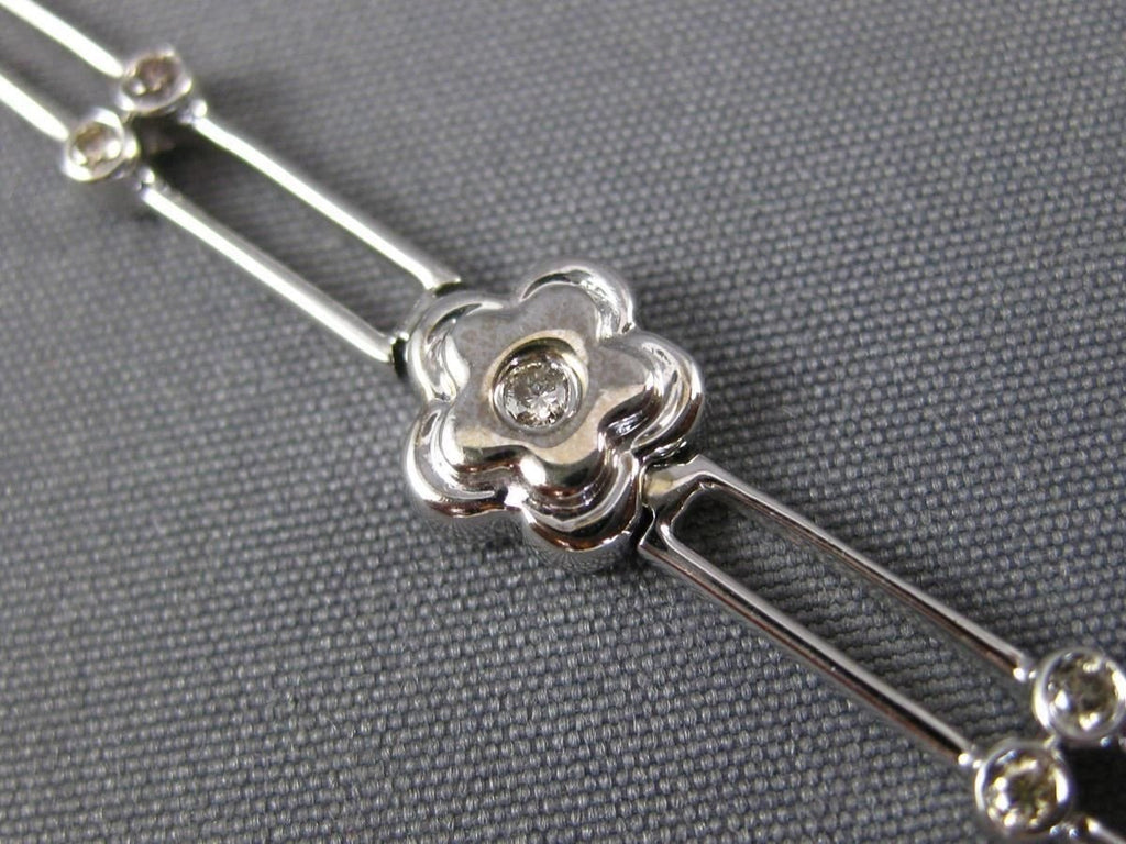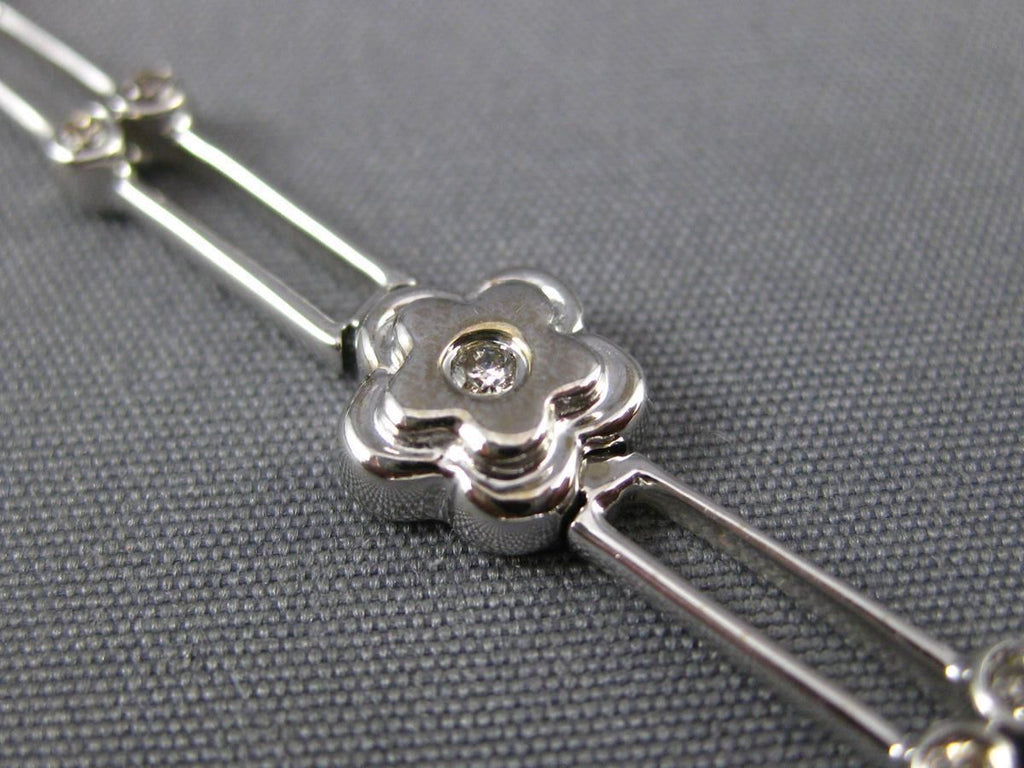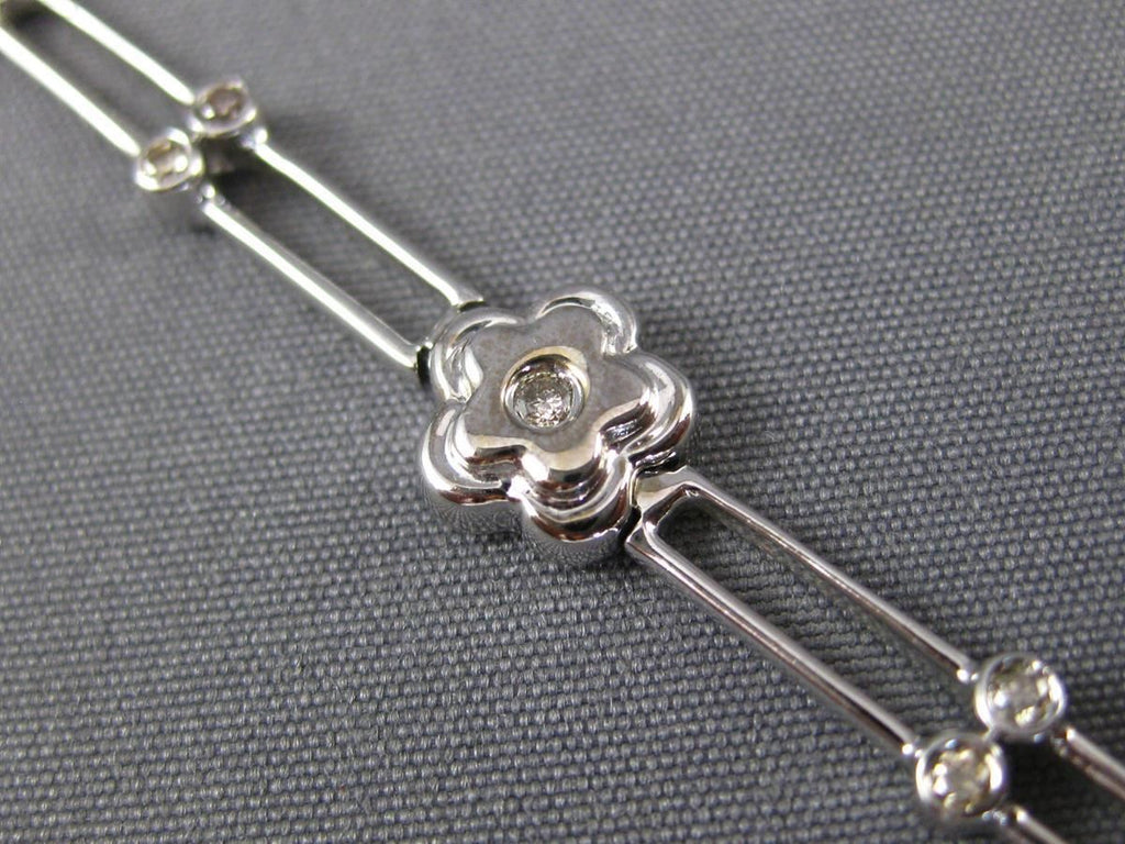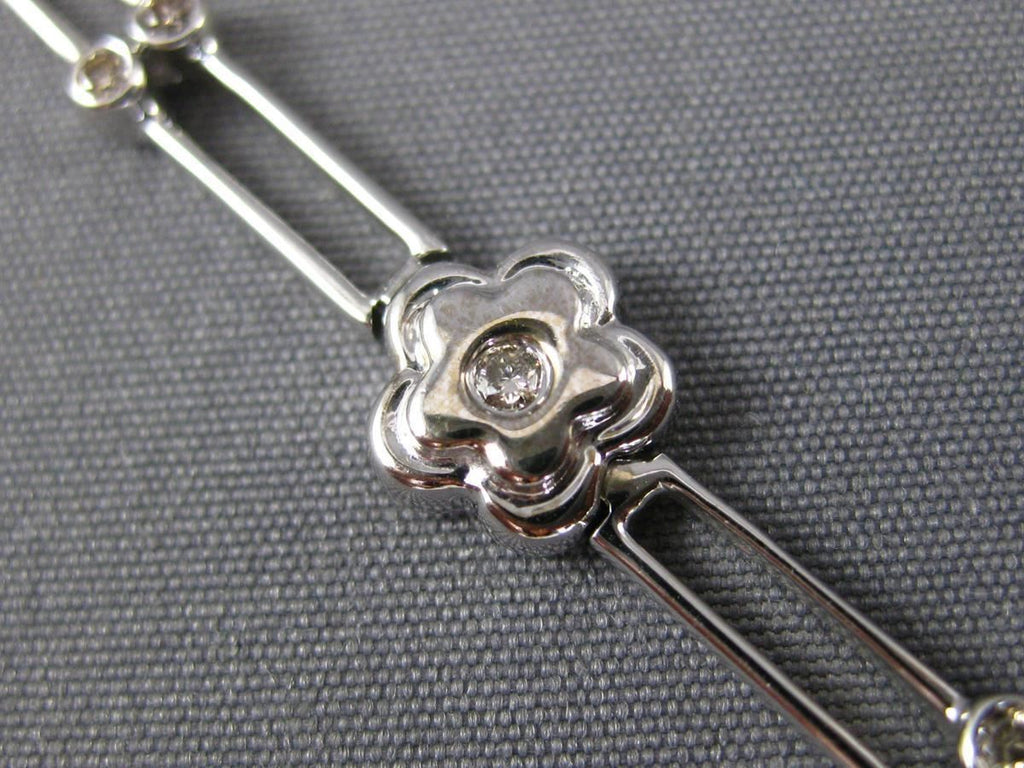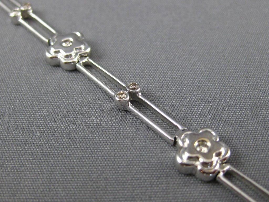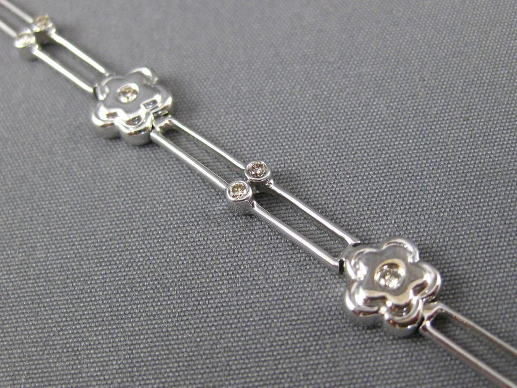 ESTATE .20CT DIAMOND 14K WHITE GOLD DOUBLE LINK FLOWER FLORAL BRACELET#19801