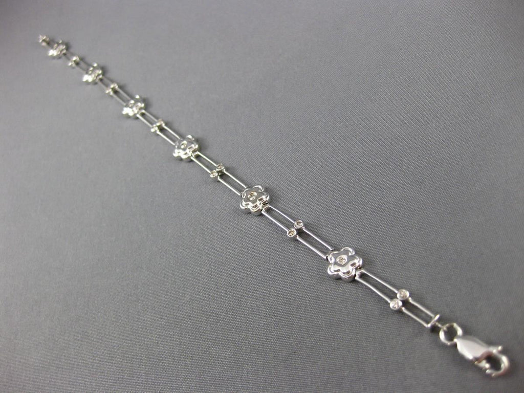ESTATE 14KT WHITE GOLD BRACELET. 3D DOUBLE LINK FLOWER FLORAL DESIGN. DIAMONDS ARE F/G COLOR VVS/VS CLARITY .20 CARATS. MEASURES 7mm WIDE. 7" INCHES LONG. WRITTEN APPRAISAL AVAILABLE. COMES IN A PRESENTABLE GIFT BOX.