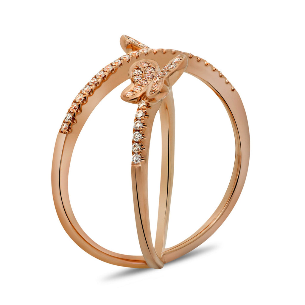 ESTATE .20CT DIAMOND 14KT ROSE GOLD 3D DOUBLE BUTTERFLY CRISS CROSS LOVE RING