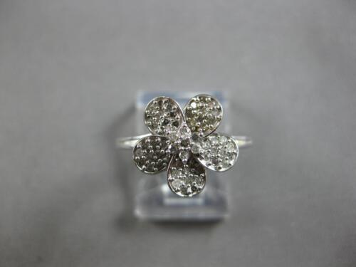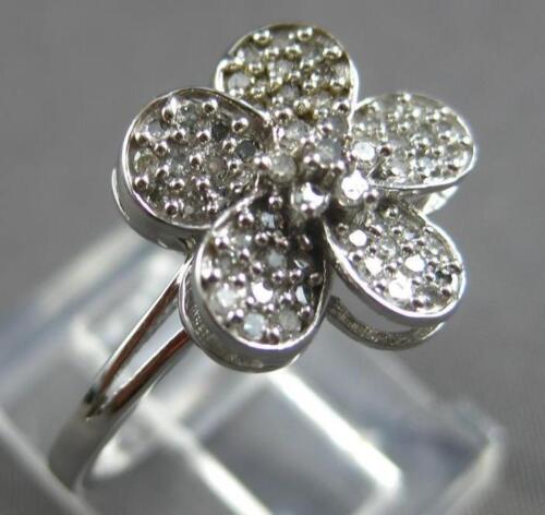 ESTATE .20CT DIAMOND 14KT WHITE GOLD 3D CLASSIC FLOWER LOVE RING #28164