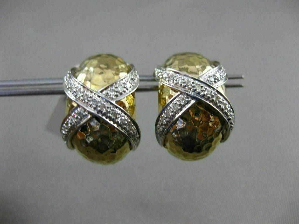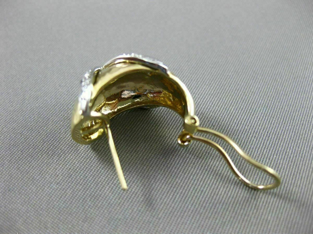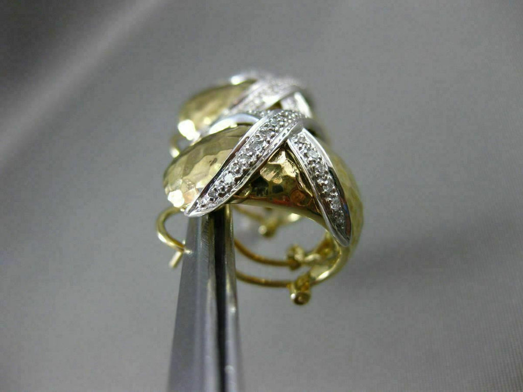 ESTATE 14KT WHITE & YELLOW GOLD CLIP ON EARRINGS. 3D ELONGATED HAMMER LOOK SHINY CRISS CROSS X LOVE DESIGN. DIAMONDS ARE F/G COLOR, VSSI CLARITY .20 CARATS. MEASURES 19mm X 12mm. WRITTEN APPRAISAL AVAILABLE UPON REQUEST. COMES IN A PRESENTABLE GIFT BOX.