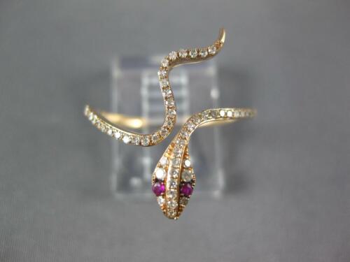 ESTATE .20CT DIAMOND & AAA RUBY 14KT ROSE GOLD 3D CLASSIC SNAKE FUN RING