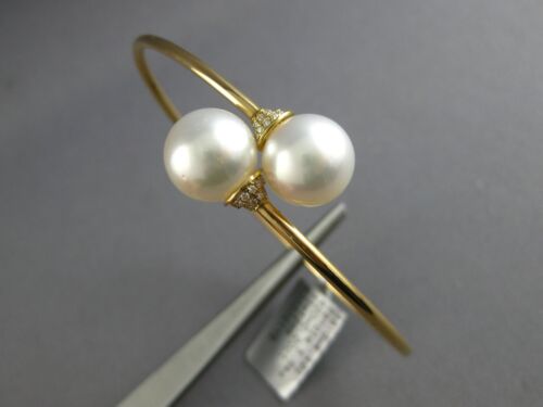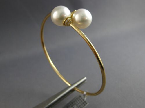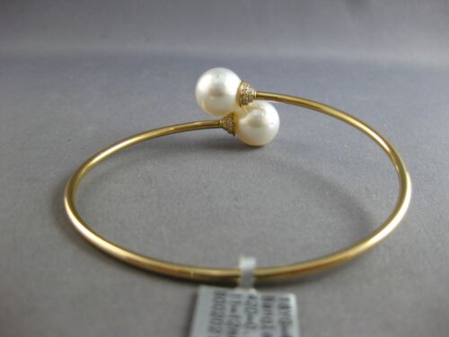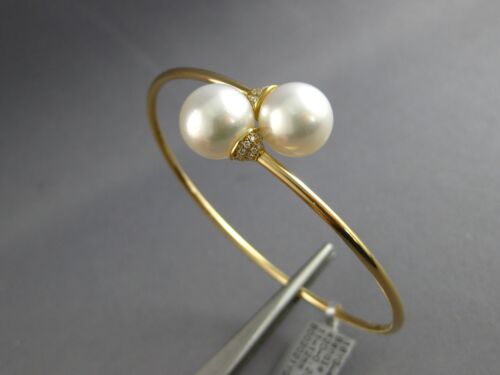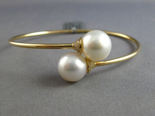ESTATE 18KT YELLOW GOLD LOVE BANGLE BRACELET. 3D FLEXIBLE DESIGN. DIAMONDS ARE F/G COLOR, VSSI CLARITY .20 CARATS. FEATURES AAA SOUTH SEA PEARLS. PEARLS MEASURE 11mm WIDE. BRACELET MEASURES 62.5mm X 56.5mm X 2mm. FITS UP TO 7" WRIST. WRITTEN APPRAISAL AVAILABLE. COMES IN A PRESENTABLE GIFT BOX.