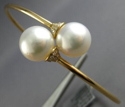 ESTATE .20CT DIAMOND & AAA SOUTH SEA PEARL 18KT YELLOW GOLD LOVE BANGLE BRACELET