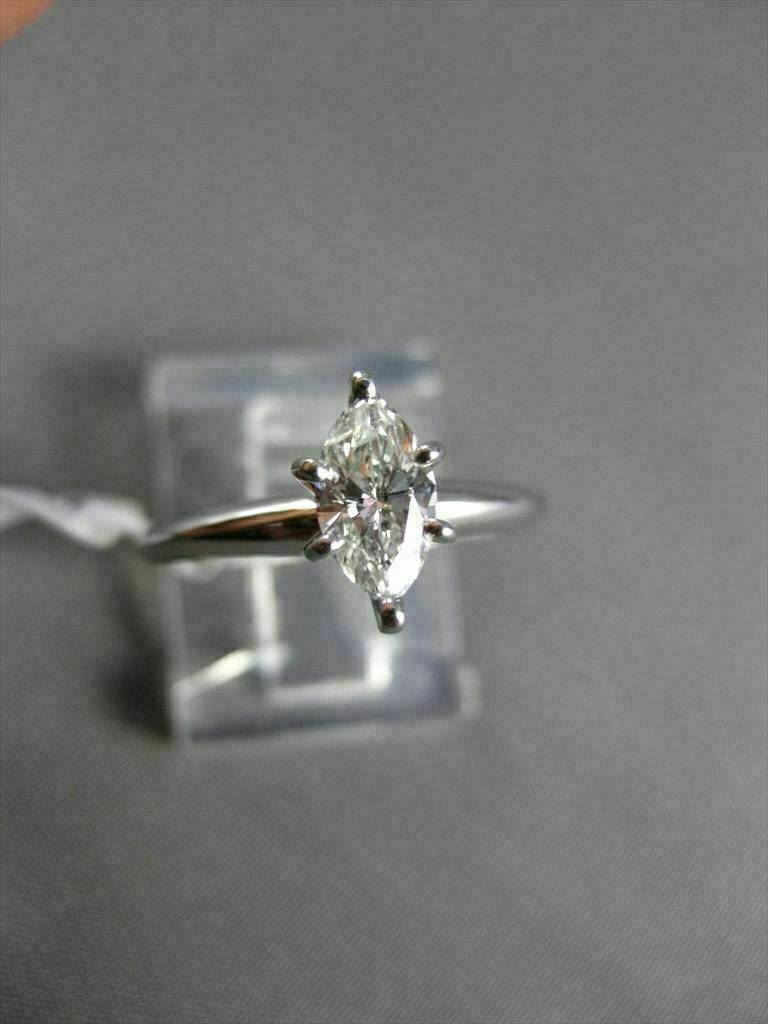 ESTATE 14KT WHITE GOLD ENGAGEMENT RING. SOLITAIRE MARQUISE DESIGN. DIAMOND IS H COLOR, SI CLARITY .50 CARATS. MEASURES 9MM X 5MM WIDE. RING SIZE 6.50. SIZING CAN BE PROVIDED BY OUR MASTER JEWELER. APPRAISALS ARE AVAILABLE UPON REQUEST. COMES IN A PRESENTABLE GIFT BOX.