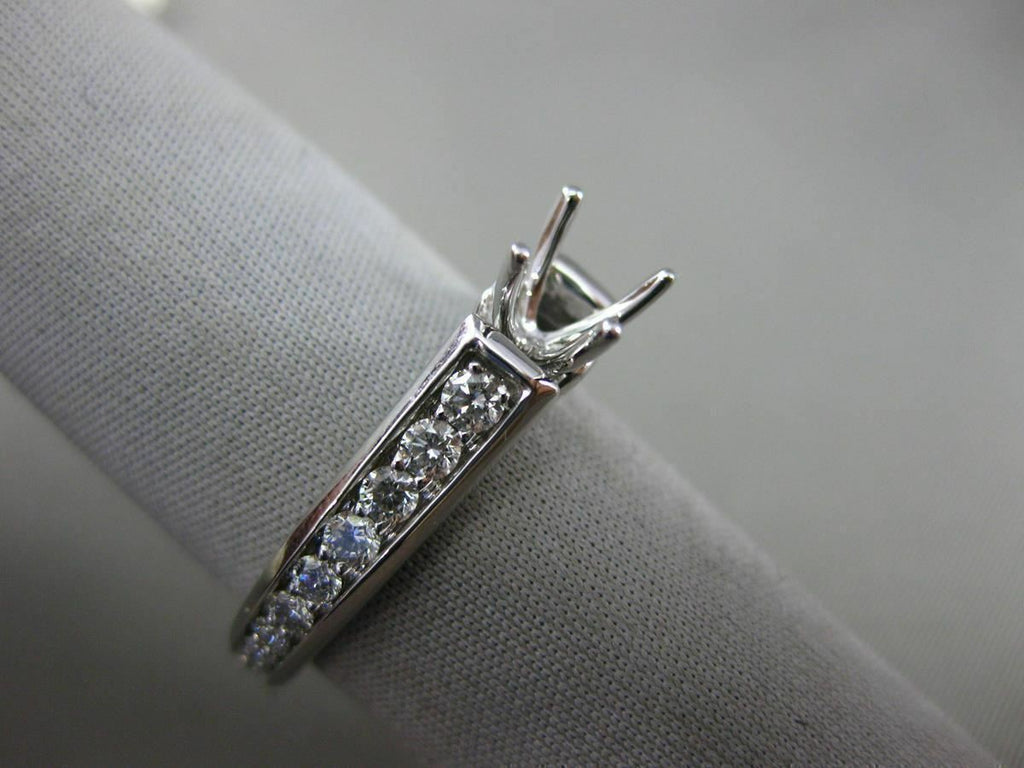 ESTATE 14KT WHITE GOLD ENGAGEMENT RING. 3D CLASSIC ETERNITY FOUR PRONG SEMI MOUNT DESIGN. DIAMONDS ARE G/H COLOR, VSSI CLARITY .62 CARATS. FITS UP TO 4mm STONE. MEASURES 4mm WIDE. RING SIZE 6.50. CAN BE SIZED BY OUR MASTER JEWELER UPON REQUEST. WRITTEN APPRAISAL AVAILABLE. COMES IN A PRESENTABLE GIFT BOX.