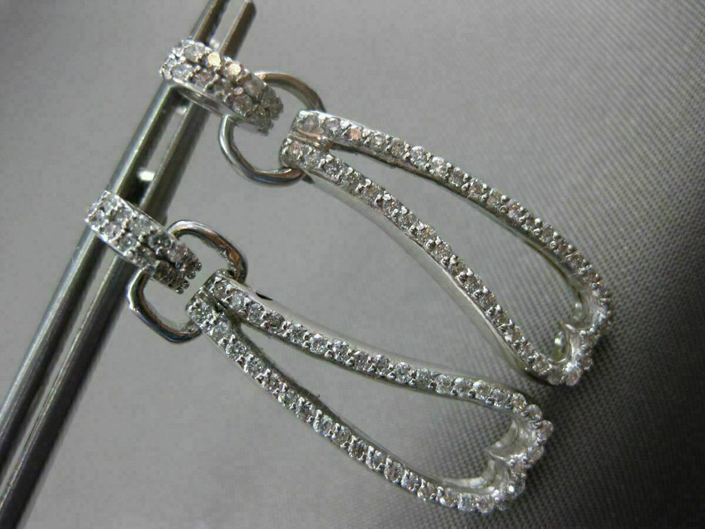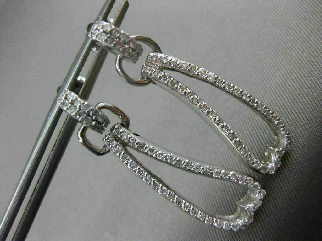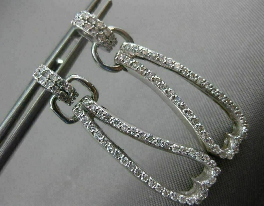 ESTATE .70CT DIAMOND 14KT WHITE GOLD 3D ELONGATED OPEN HEART HANGING EARRINGS