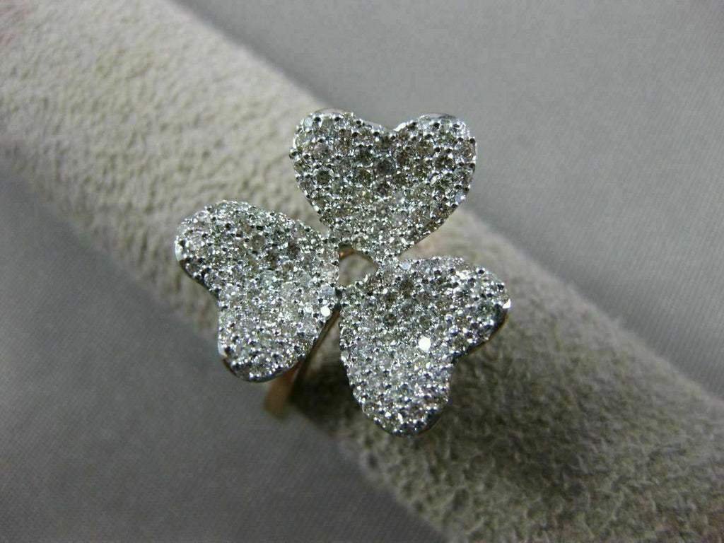 ESTATE 14KT ROSE GOLD LOVE RING. 3D CLASSIC PAVE HEART SHAPED FLOWER DESIGN. DIAMONDS ARE F/G COLOR, VSSI CLARITY .81 CARATS. MEASURES 16mm WIDE. RING SIZE 7. CAN BE SIZED BY OUR MASTER JEWELER UPON REQUEST. WRITTEN APPRAISAL AVAILABLE. COMES IN A PRESENTABLE GIFT BOX.