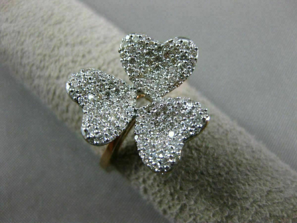 ESTATE .81CT DIAMOND 14K ROSE GOLD 3D CLASSIC PAVE HEART SHAPED FLOWER LOVE RING