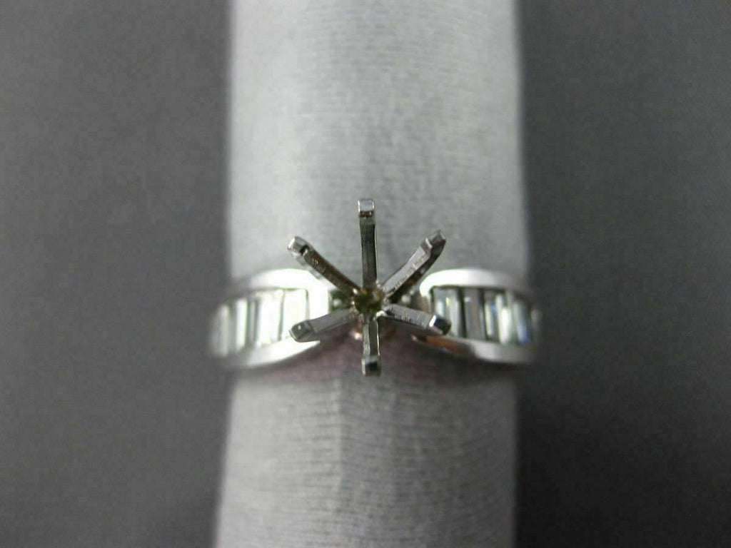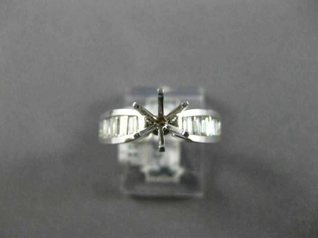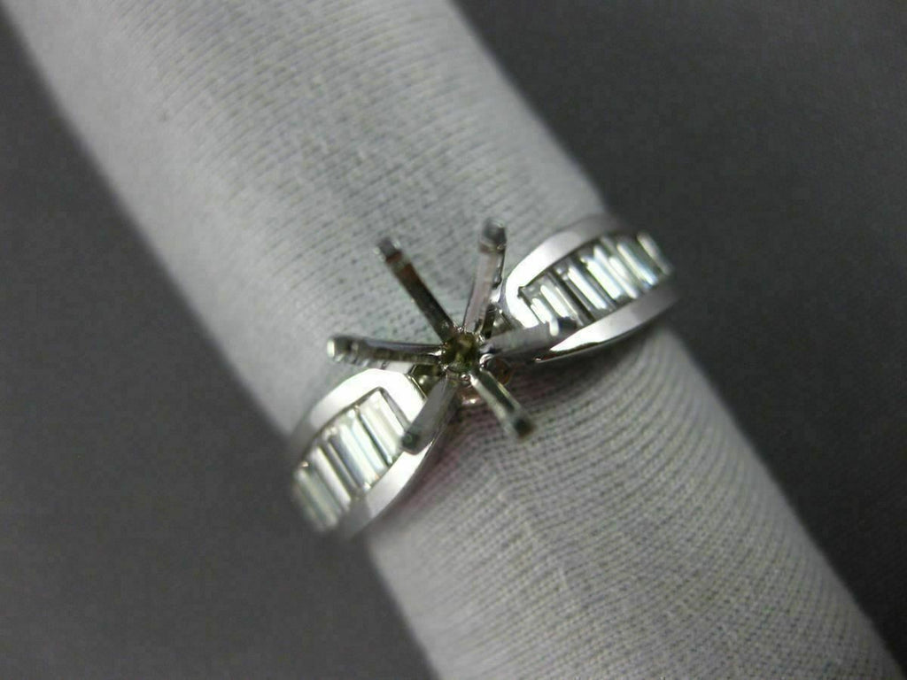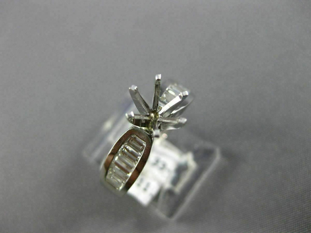 ESTATE 14KT WHITE GOLD ENGAGEMENT RING. 3D CLASSIC 6-PRONG SEMI ETERNITY. BAGUETTE DIAMONDS ARE F/G COLOR, VSSI CLARITY .90 CARATS. CENTER BASKET FITS UP TO 7mm ROUND STONE. MEASURES 5mm WIDE. RING SIZE 6. CAN BE SIZED BY OUR MASTER JEWELER UPON REQUEST. WRITTEN APPRAISAL AVAILABLE. COMES IN A PRESENTABLE GIFT BOX.