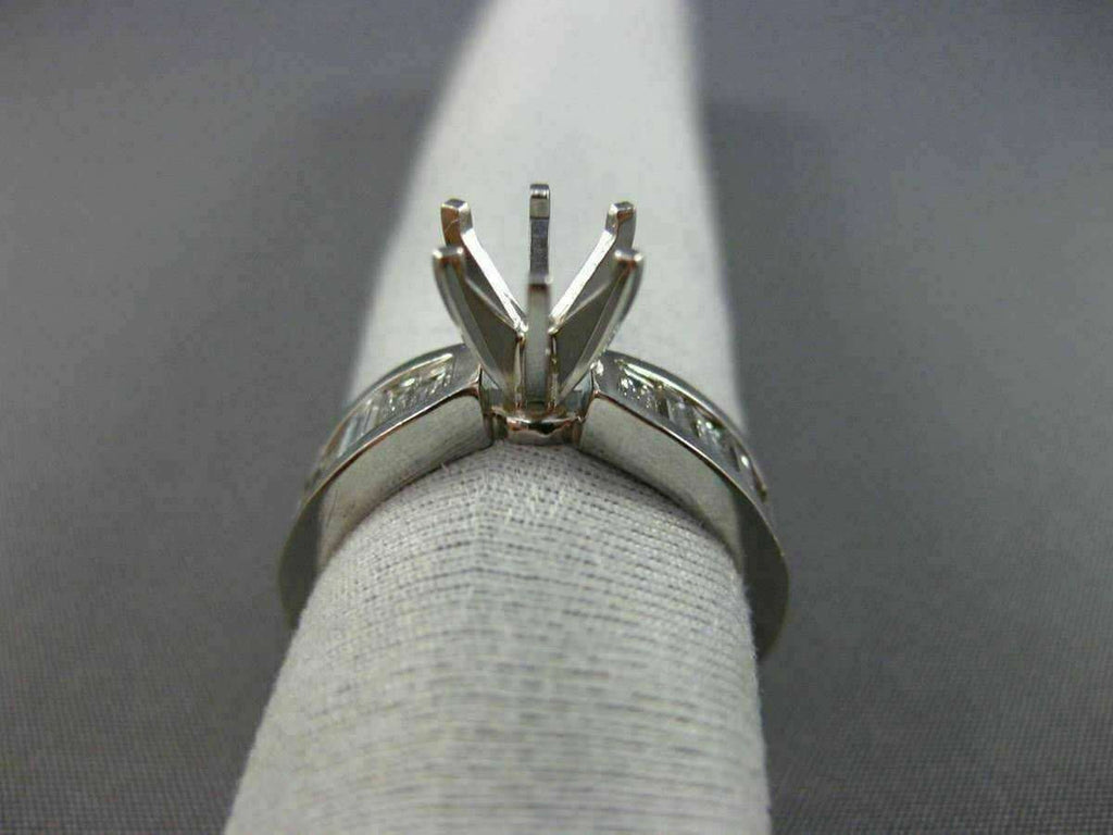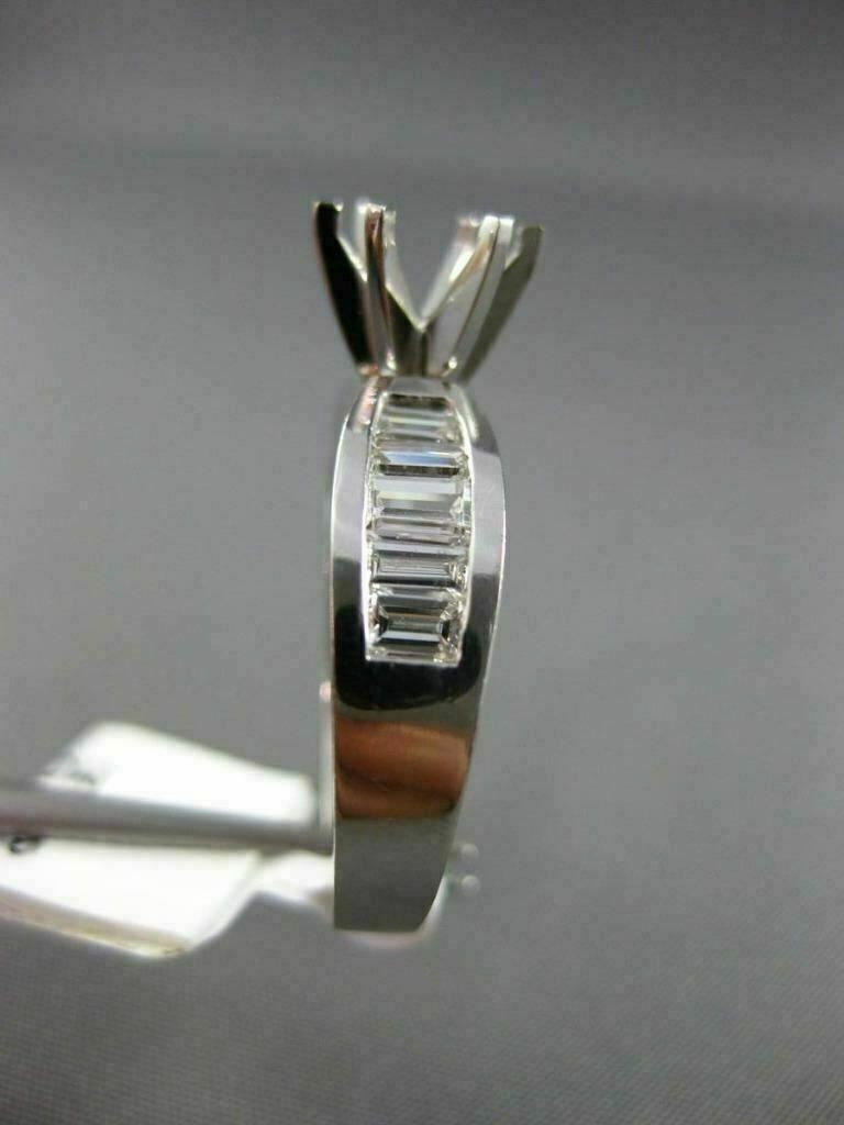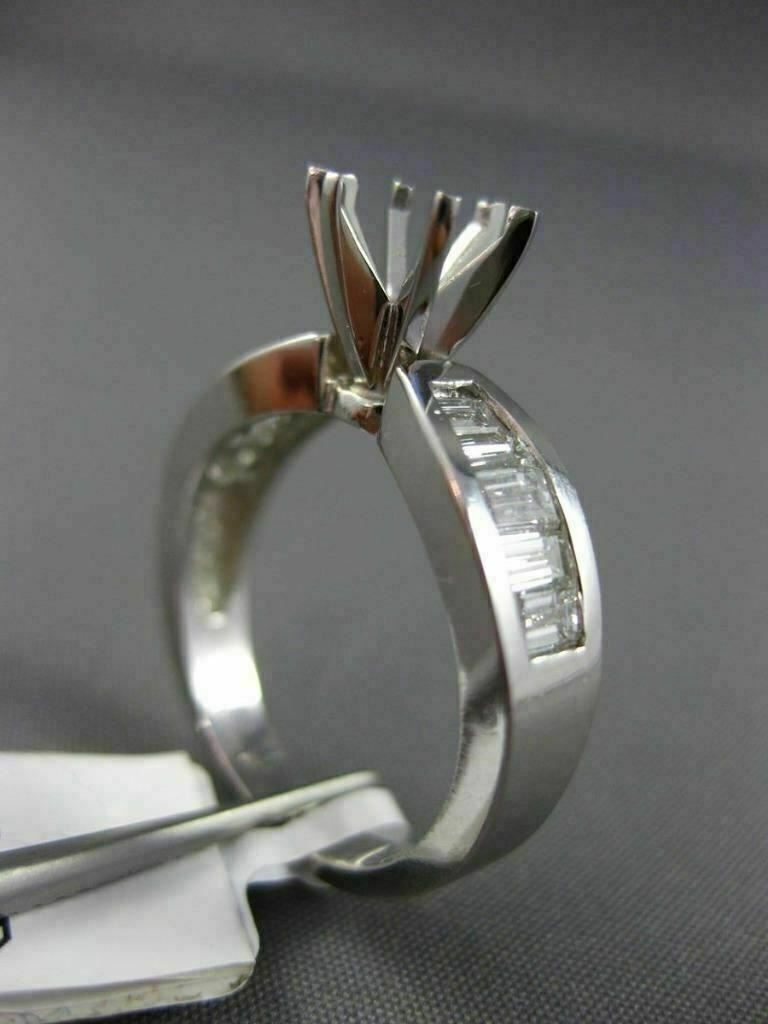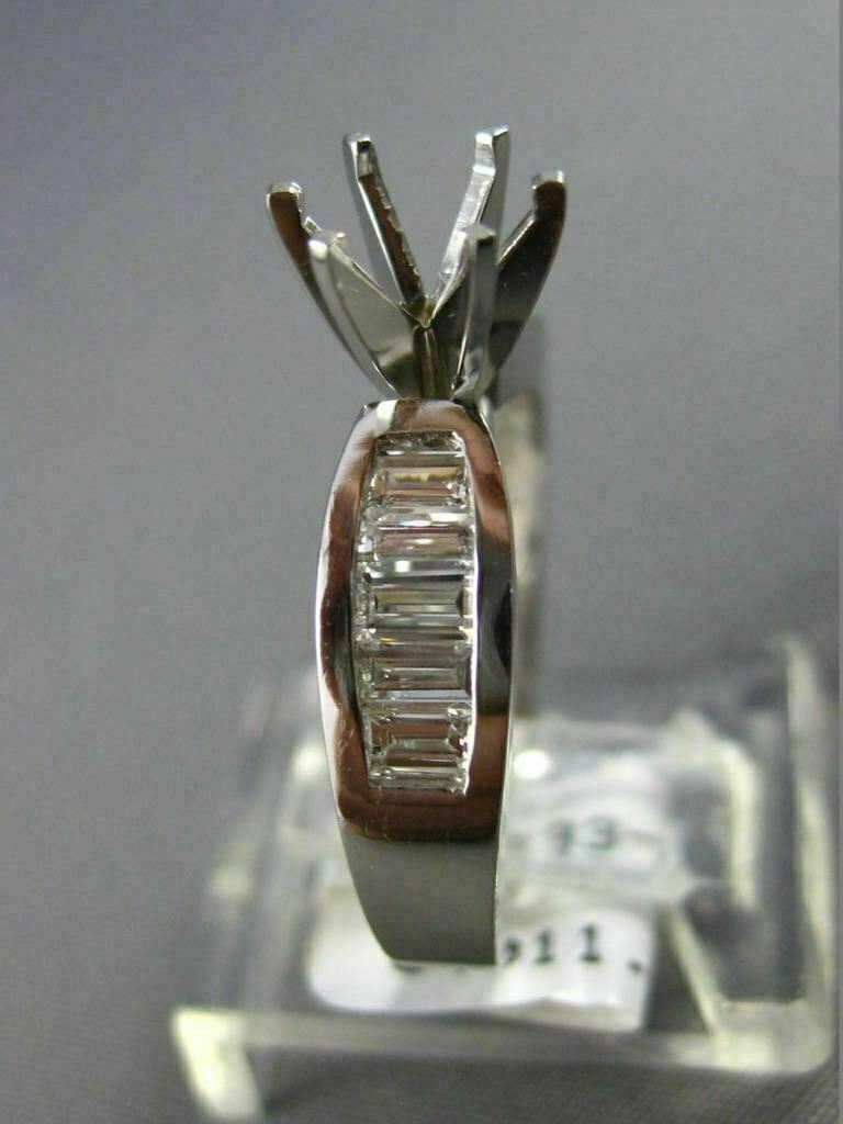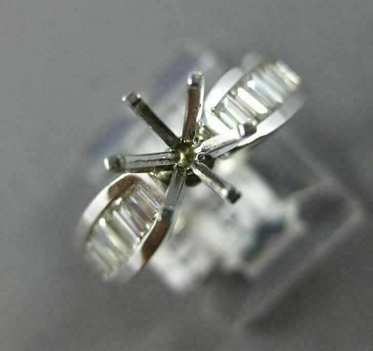 ESTATE 14KT WHITE GOLD ENGAGEMENT RING. 3D CLASSIC 6-PRONG SEMI ETERNITY. BAGUETTE DIAMONDS ARE F/G COLOR, VSSI CLARITY .90 CARATS. CENTER BASKET FITS UP TO 7mm ROUND STONE. MEASURES 5mm WIDE. RING SIZE 6. CAN BE SIZED BY OUR MASTER JEWELER UPON REQUEST. WRITTEN APPRAISAL AVAILABLE. COMES IN A PRESENTABLE GIFT BOX.