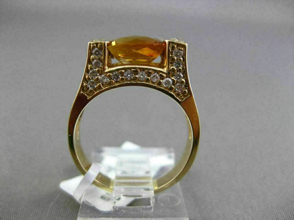 ESTATE LARGE 14KT YELLOW GOLD RING. 3D TENSION DESIGN. DIAMONDS ARE F/G COLOR, VS CLARITY .40 CARATS. AAA EXTRA FACET CITRINE 1.75 CARATS. MEASURES 6.5MM WIDE. RING SIZE 6.75. SIZING CAN BE PROVIDED BY OUR MASTER JEWELER. APPRAISALS ARE AVAILABLE. COMES IN A PRESENTABLE GIFT BOX.