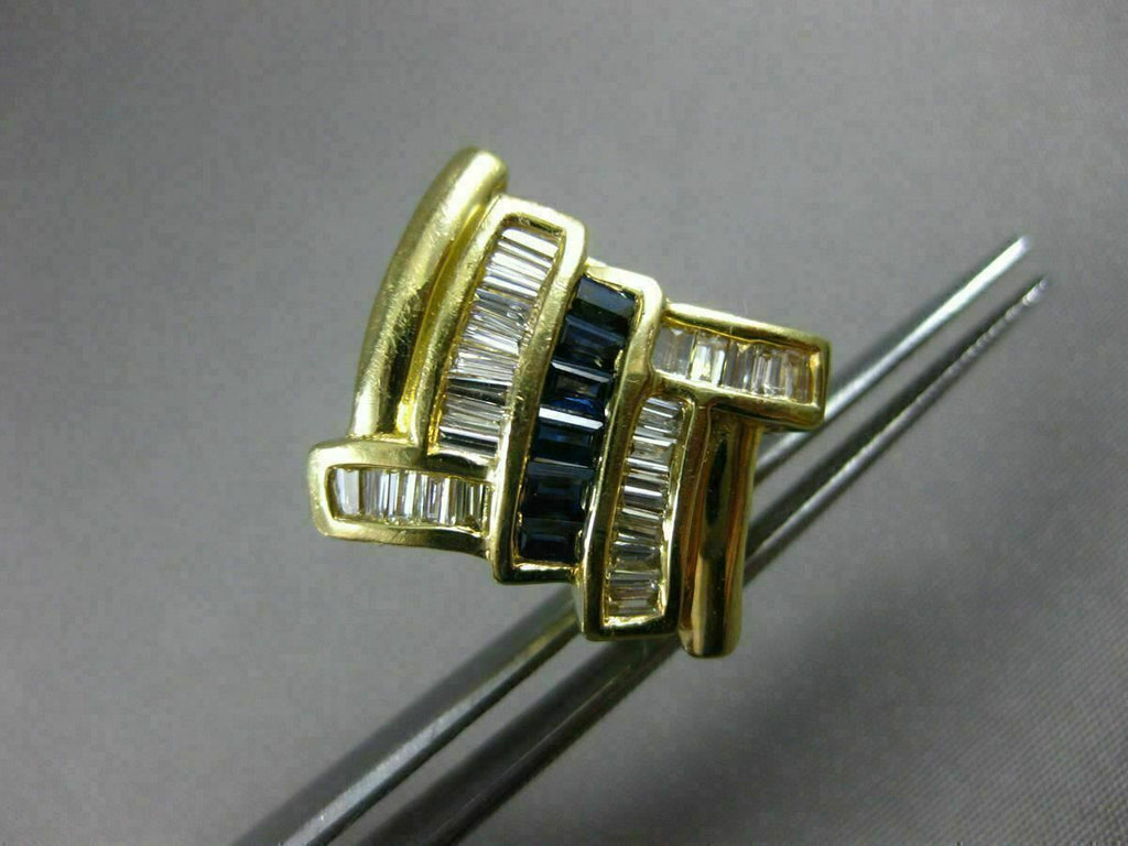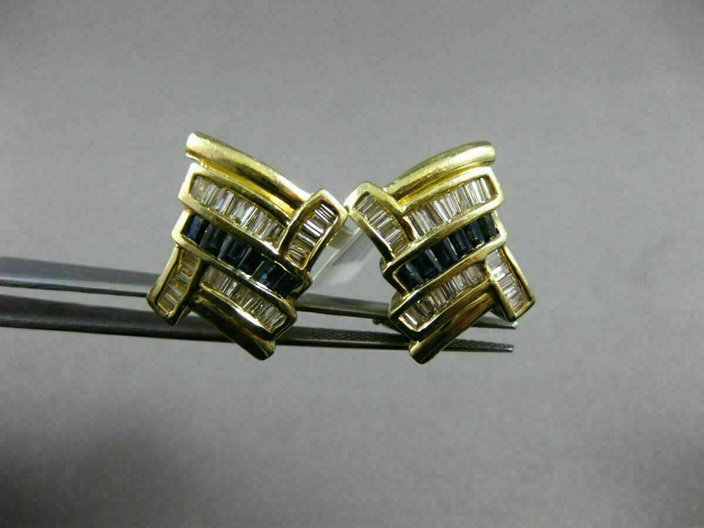 ESTATE LARGE 14KT YELLOW GOLD CLIP ON EARRINGS. 3D CRISS CROSS CLASSIC DESIGN. BAGUETTE DIAMONDS ARE G/H COLOR, VSSI CLARITY 1.0 CARATS. AAA SAPPHIRES ARE .80 CARATS. MEASURES 20mm WIDE. WRITTEN APPRAISAL AVAILABLE. COMES IN A PRESENTABLE GIFT BOX.