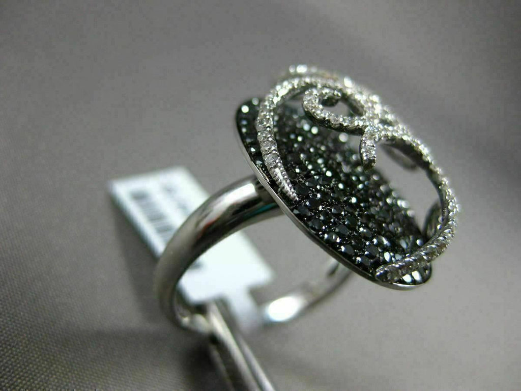 ESTATE LARGE 1.89CT WHITE & BLACK DIAMOND 18KT WHITE GOLD OVAL FILIGREE FUN RING
