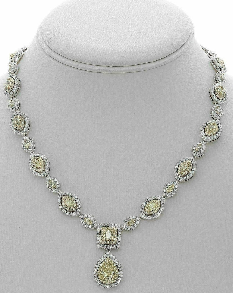 ESTATE LARGE 17.44CT WHITE & FANCY DIAMOND 18K 2 TONE GOLD 3D TEAR DROP NECKLACE