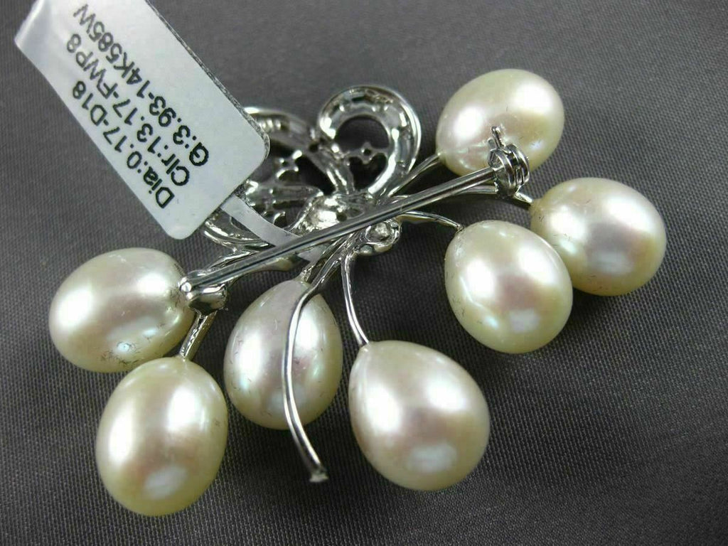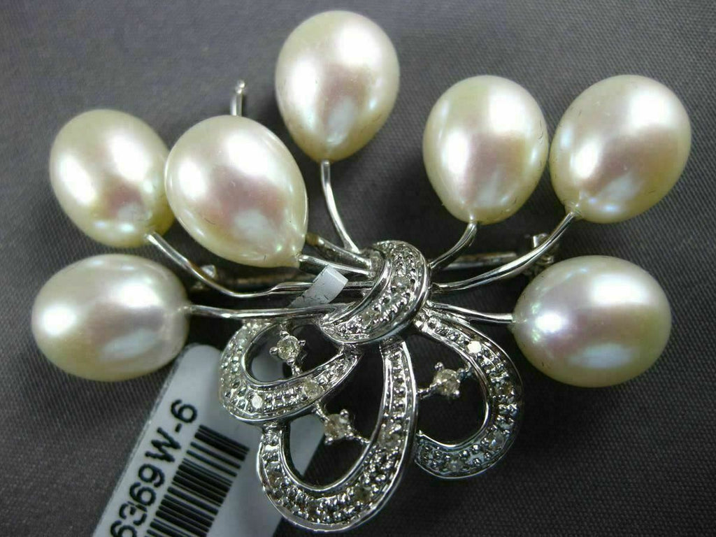 ESTATE LARGE .17CT DIAMOND & AAA PEARL 18KT WHITE GOLD FLOWER BROOCH PIN #26612