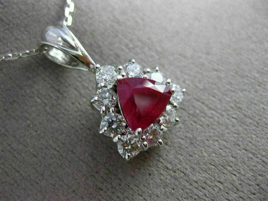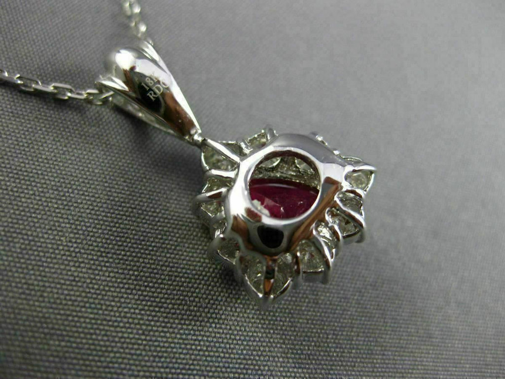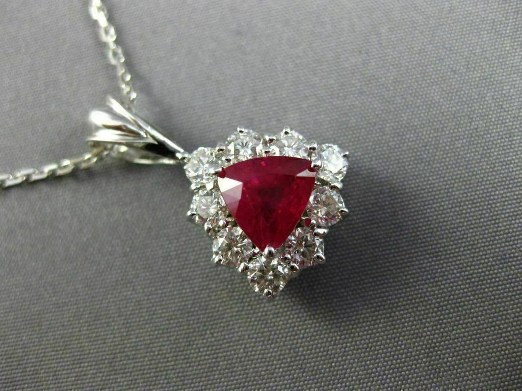 ESTATE LARGE 3.12CT DIAMOND & RUBY 18K WHITE GOLD TRILLION HALO FLOATING PENDANT