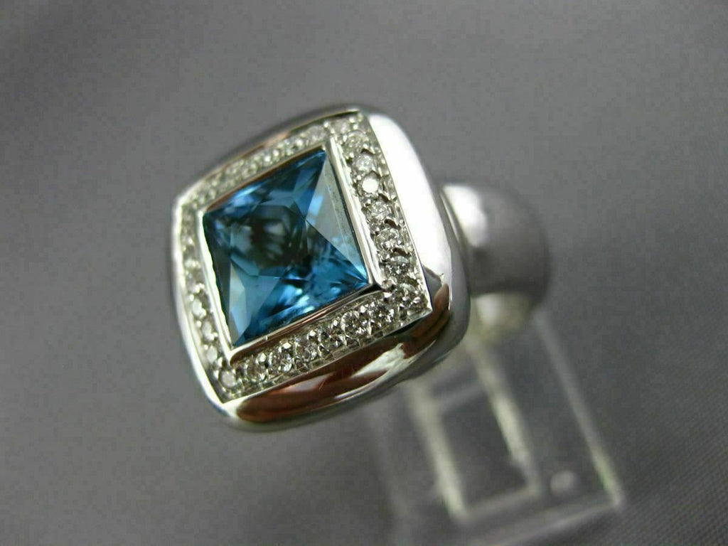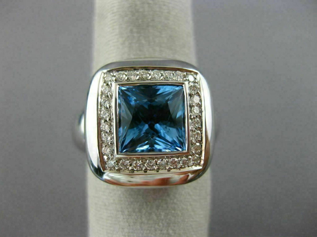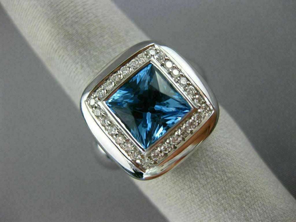ESTATE LARGE 18KT WHITE GOLD RING. 3D HALO DESIGN. DIAMONDS ARE F/G COLOR, VS CLARITY .60 CARATS. AAA EXTRA FACET BLUE TOPZ IS 3.0 CARATS. MEASURES 16mm WIDE. RING SIZE 7. CAN BE SIZED BY OUR MASTER JEWELER UPON REQUEST. WRITTEN APPRAISAL AVAILABLE. COMES IN A PRESENTABLE GIFT BOX.