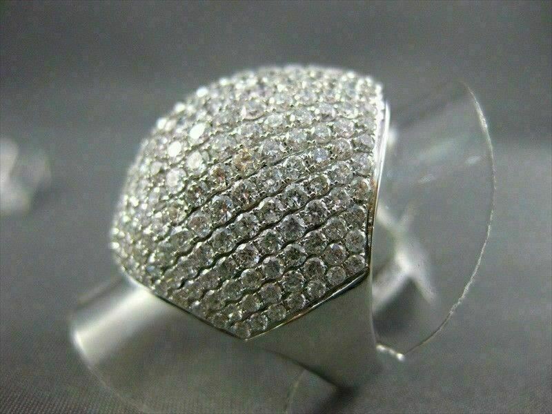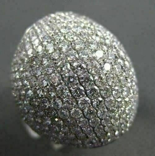 ESTATE LARGE 6.05CTW DIAMOND 18KT WHITE GOLD FLAT DOME SHAPE FUN RING STUNNING!