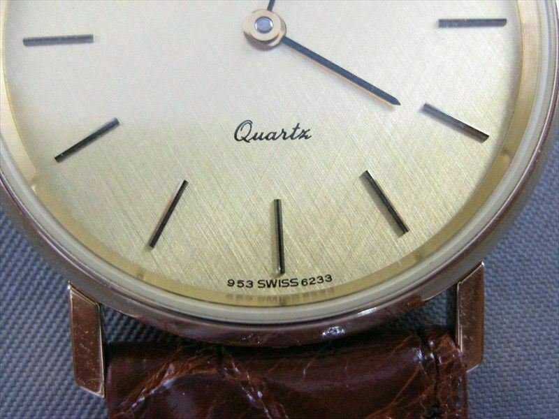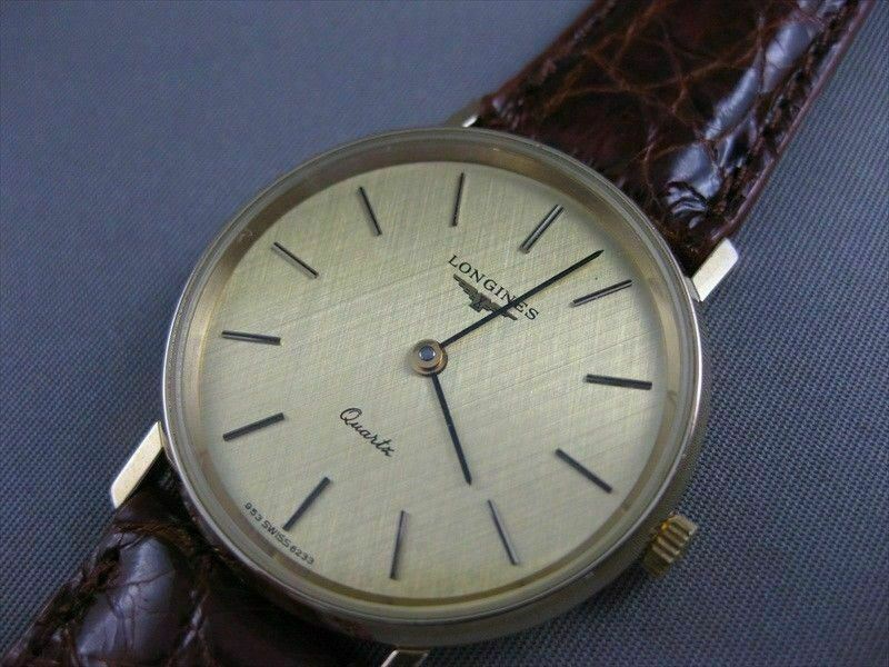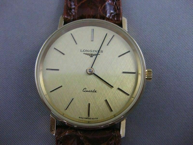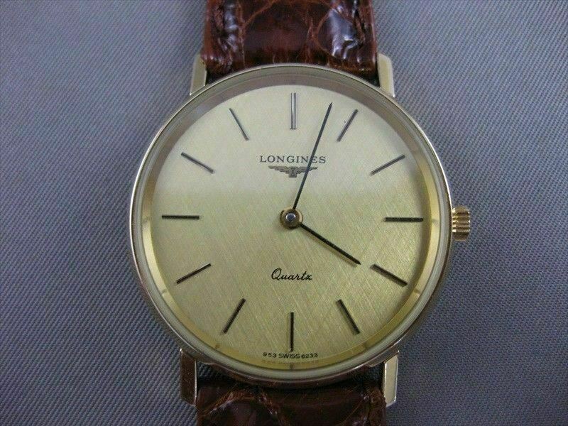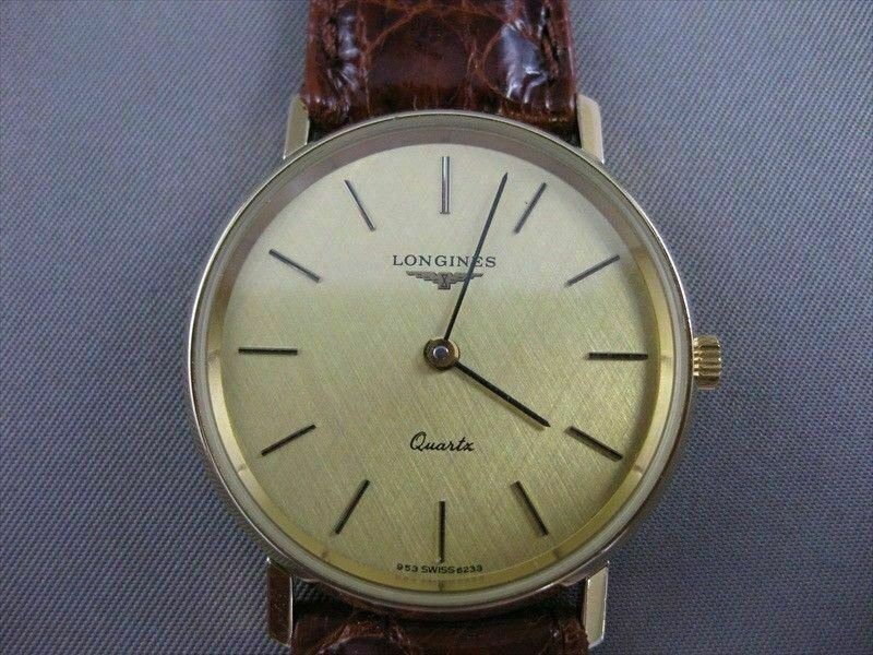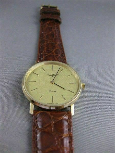 ESTATE LONGINES SWISS QUARTZ GOLD FILLED MENS WATCH CROCODILE BAND 35MM #21586