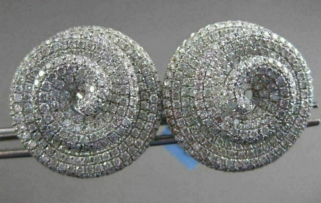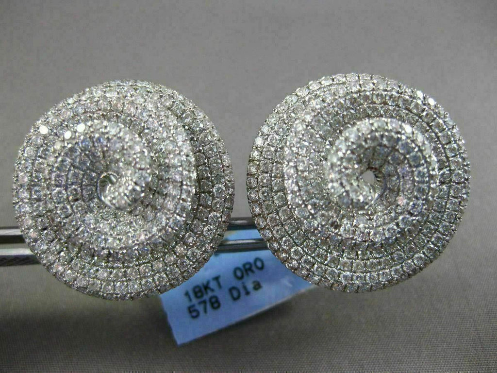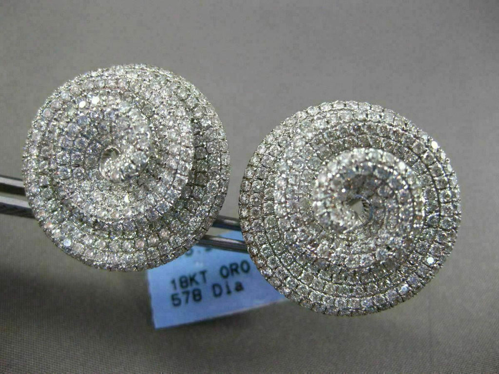 ESTATE MASSIVE 14KT WHITE GOLD CLIP ON EARRINGS. SWIRL DESIGN. DIAMONDS ARE F/G COLOR, VVS CLARITY 5.98 CARATS. MEASURES 25MM WIDE. WRITTEN APPRAISAL AVAILABLE. COMES IN A PRESENTABLE GIFT BOX.